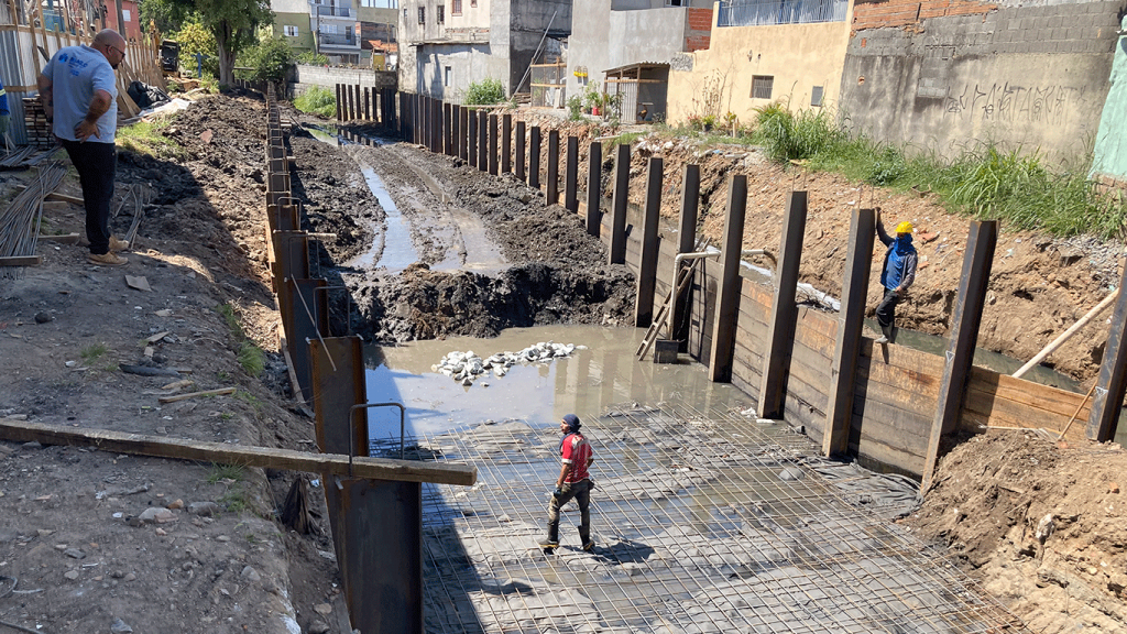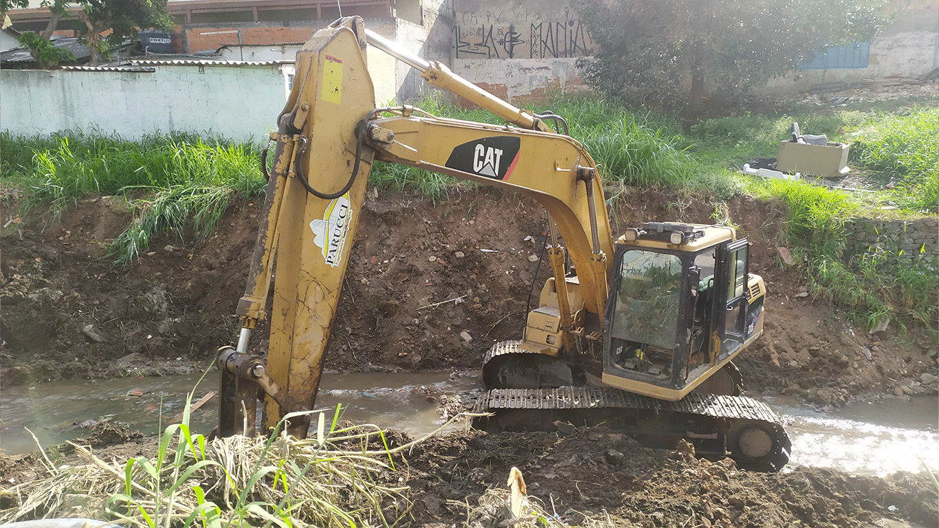 Obras de recuperação e contenção no córrego da Paciência